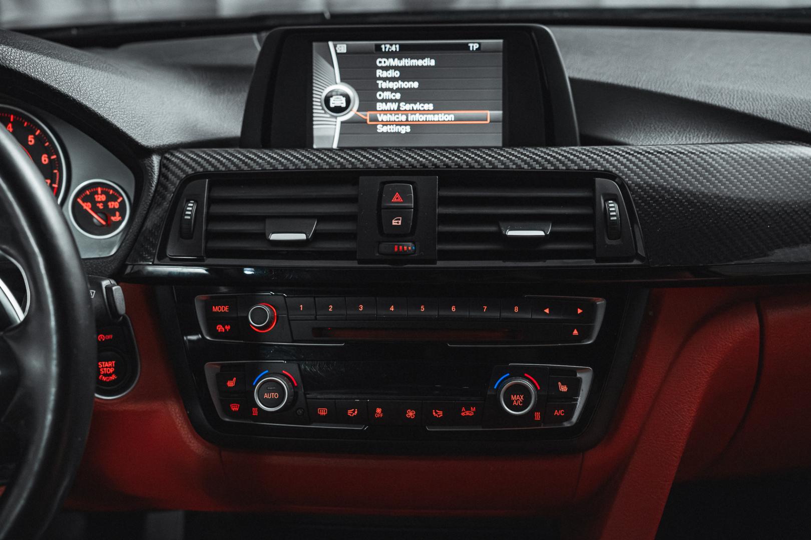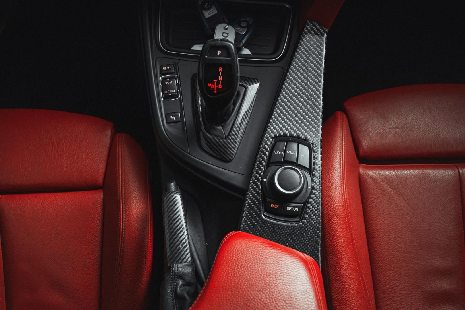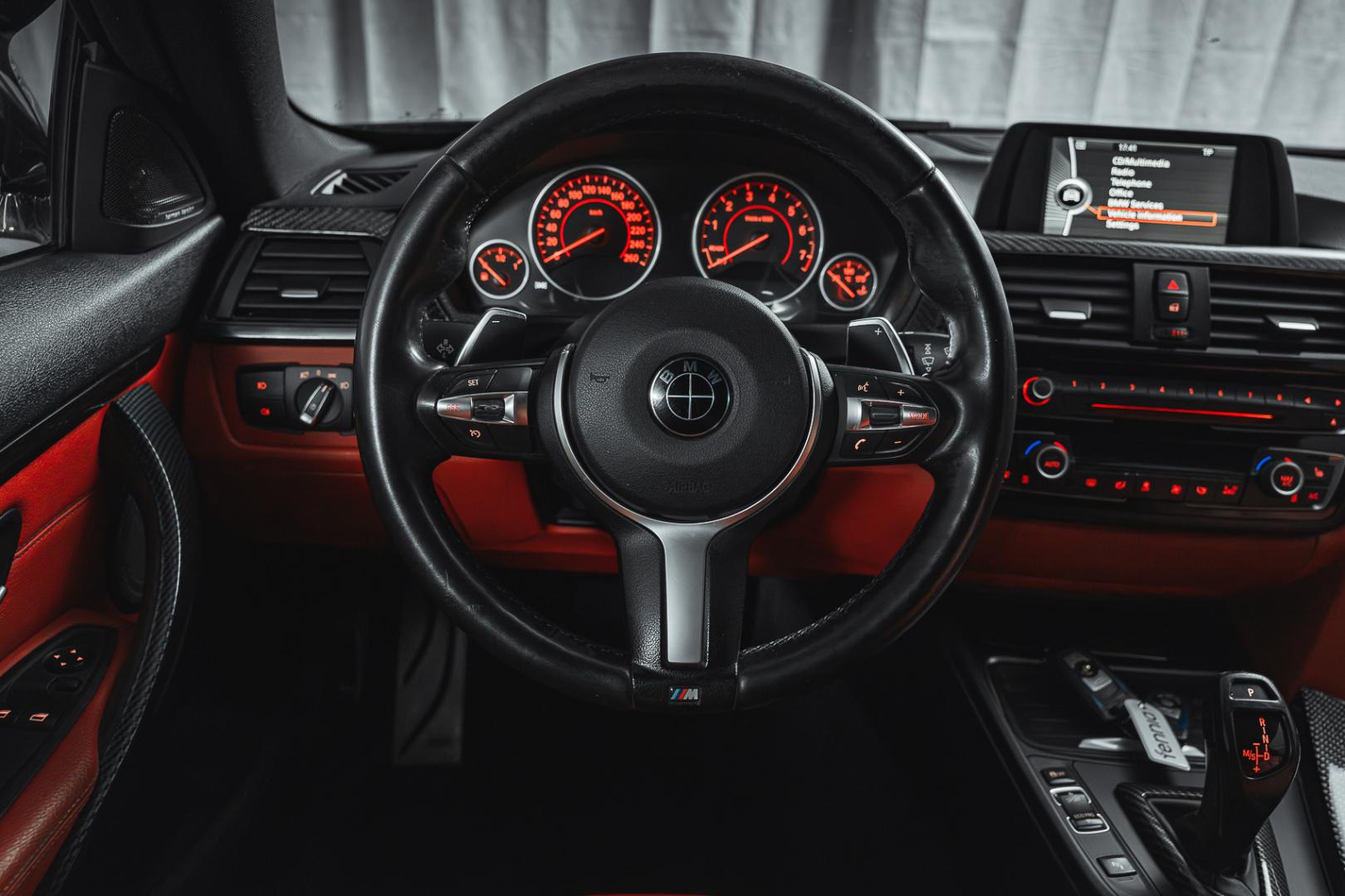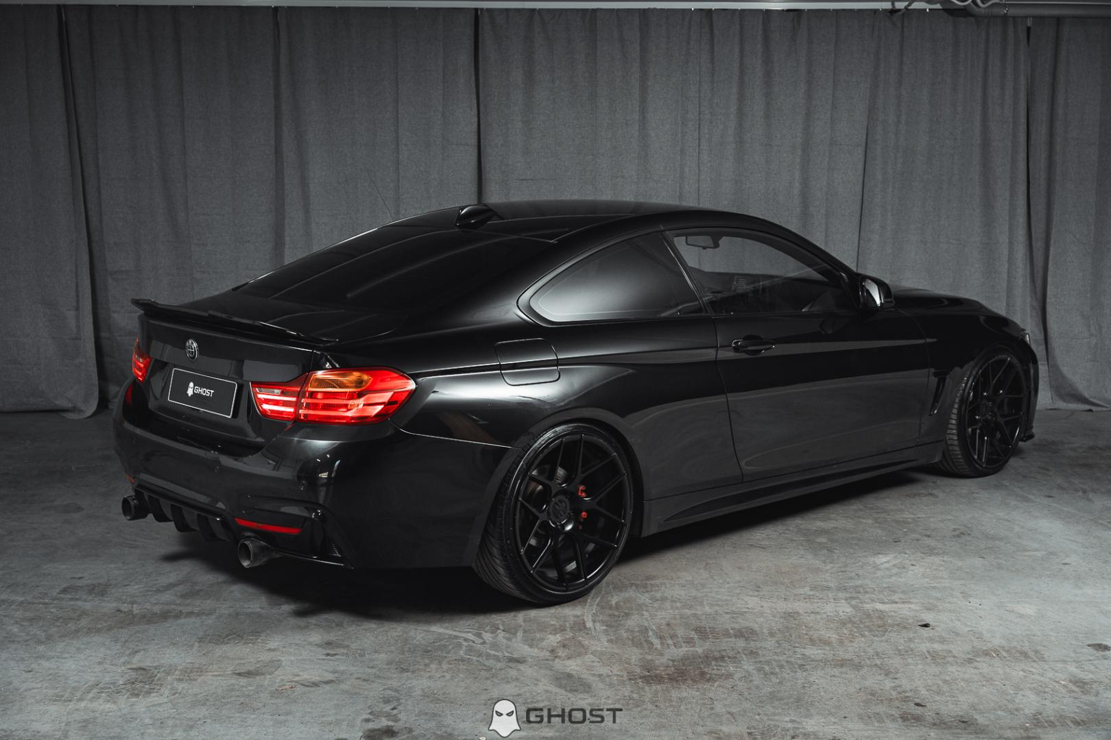 Räyheä BMW 428i F32 Coupe mustalla metallivärillä ja erikoisella punaisella nahkasisustalla sekä hiilikuituisilla yksityiskohdilla. Tästä ei kyllä auto komeammaksi muutu. QT Performancen softan ja downpipen ansiosta auto ei pelkästään näytä hyvältä vaan myös kuulostaa hyvältä!