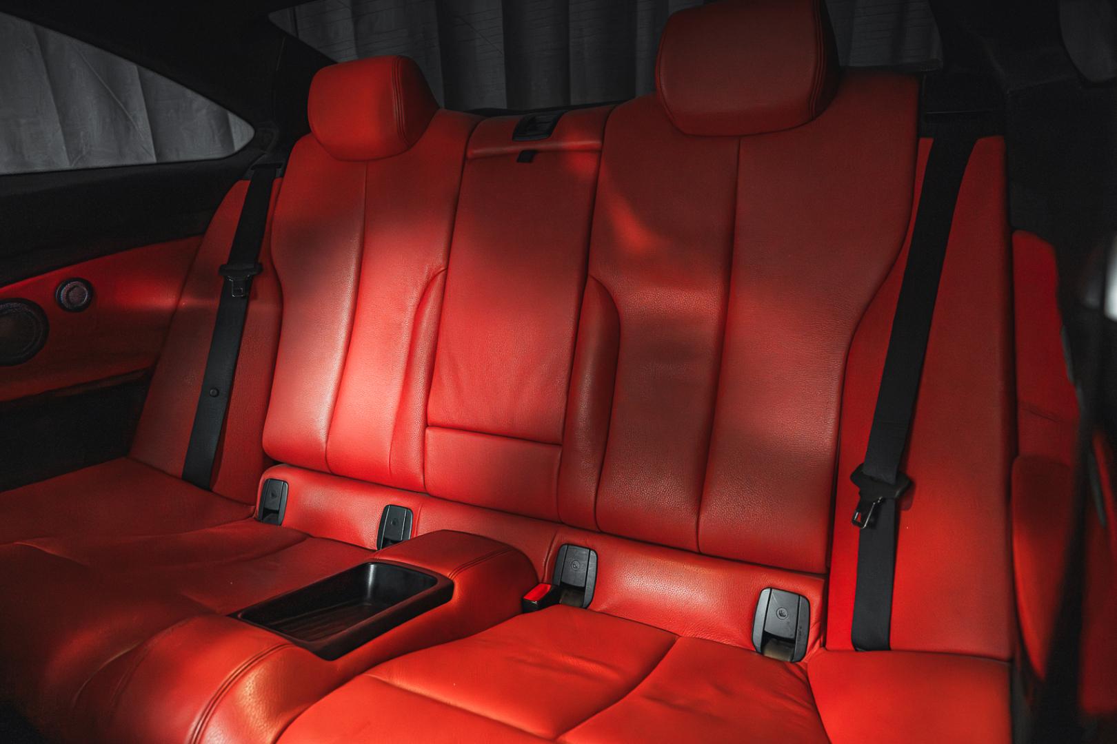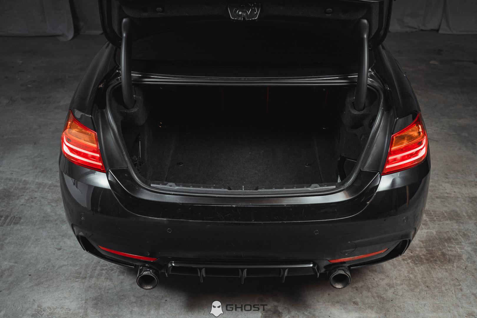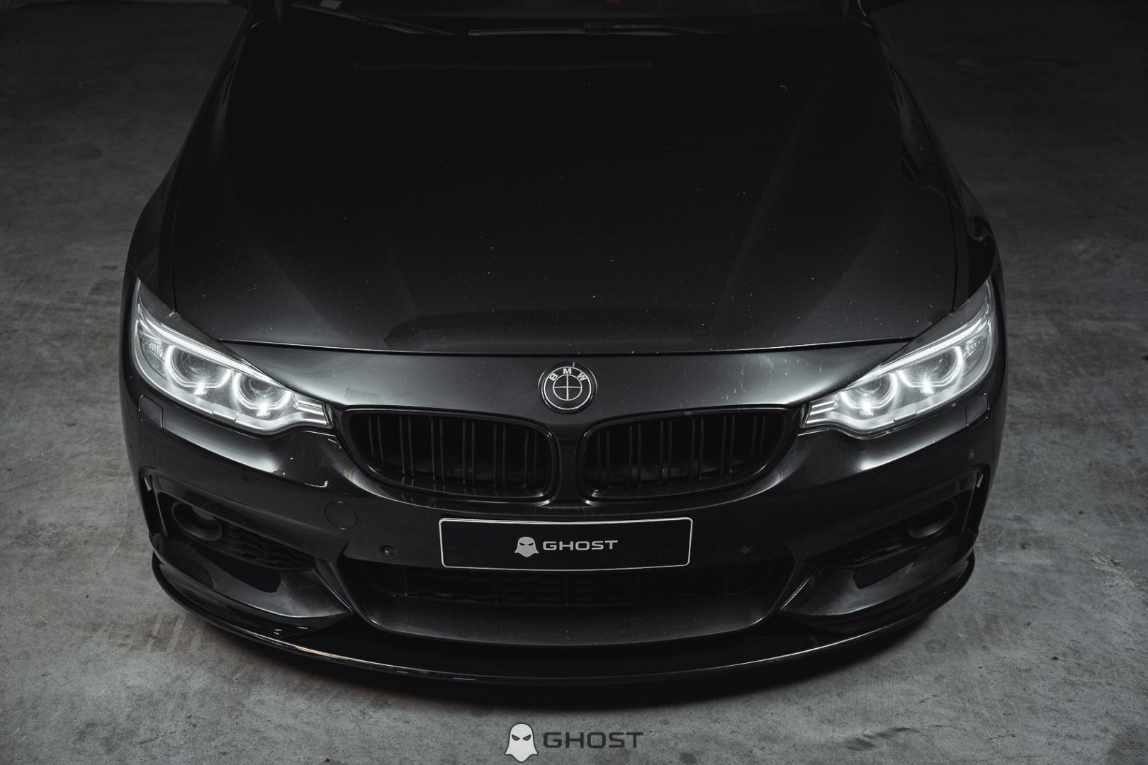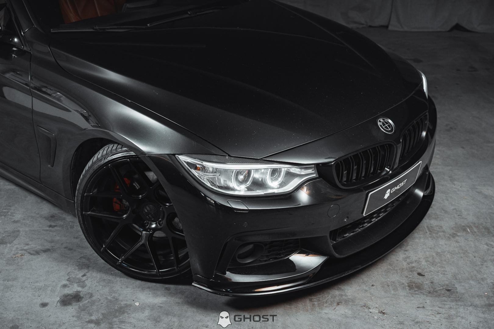 Räyheä BMW 428i F32 Coupe mustalla metallivärillä ja erikoisella punaisella nahkasisustalla sekä hiilikuituisilla yksityiskohdilla. Tästä ei kyllä auto komeammaksi muutu. QT Performancen softan ja downpipen ansiosta auto ei pelkästään näytä hyvältä vaan myös kuulostaa hyvältä!