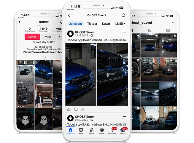 Räätälöimme juuri sinulle sopivan paketin tarpeidesi mukaisesti. Oli kyse sitten rahoituksesta, vakuutuksesta tai lisäturvasta - GHOST palvelee sinua.